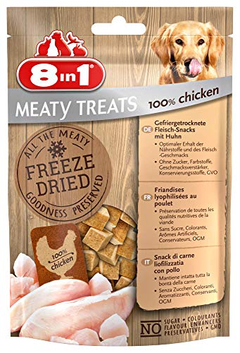 8 in 1 meaty treatsergänzungsfutter für hundefreeze dried meaty treats mit 100 % huhnverwöhnen sie ihren hund mit köstlichen 8in1 meaty treats!unsere rezeptur mit 100 % hähnchenbrust enthält sämtliche nährstoffe von leckerem fleisch!die zutaten wurden schonend gefriergetrocknet