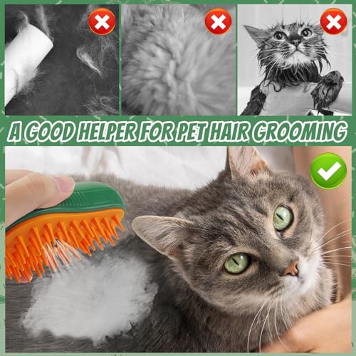 Brosse Chien Chat à Vapeur, Brosse à Vapeur 3 en 1 pour Chat Steamy Brosse pour Chat Brosse Chiens Chats, Pour Chiens chats eliminer efficacement des poils tomentose sous-poil Tangles (Vert)