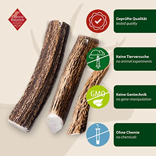 ChronoBalance® Bois de cerf Barre à mâcher pour Chiens: L Jouet à mâcher Hygiène Dentaire 100% Naturel: Jouet pour Chien Racine à mâcher Friandise Hygiène Dentaire Set
