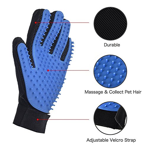 Specification: Deggodech Silicon Pet Gant de Toilettage Massage Animal Gant pour Chat et Chien Efficace Fourrure Brosse de Bain épilateur Toilettage Gant en Caoutchouc Grooming (1pc, Bleu & Noir)
