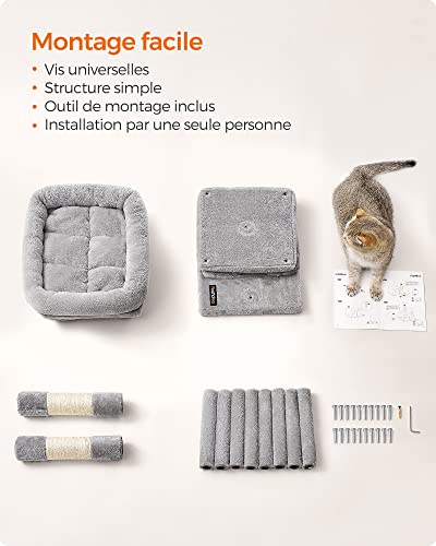 [2 niches pour chats] La niche en haut dotée de 2 portes offre une large vue et un accès facile. La niche en bas dotée d’une seule porte est un coin tranquille pour faire la sieste. Elle est également idéale pour les chatons qui ont du mal à monter en haut