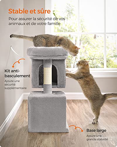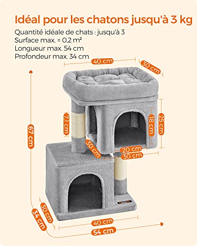 Specification: Feandrea Arbre à Chat, Tour de Jeux 67 cm, S, Maison pour Chatons Jusqu’à 3 kg, Grande Plate-Forme, 2 Niches, Griffoir, Gris Clair PCT611W01