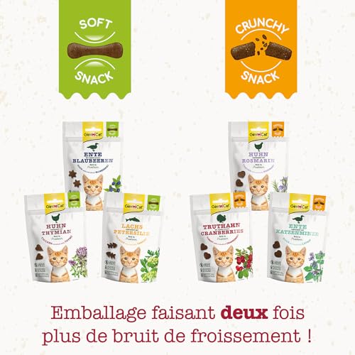 CONTIENT : 1 sachet 50 g GimCat Crunchy Snacks Dinde aux canneberges pour assurer une vie de chat heureuse