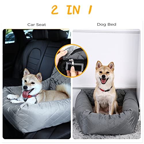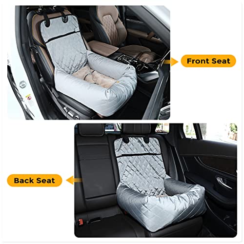 HAPPY HACHI Siège de Voiture pour Chien 2 en 1 Siège d’Auto Chien, Siège pour Véhicule de Voyage Portatif Transporteur pour Animal de Compagnie avec Chenil Épais et Sangle de Sécurité(Gris)