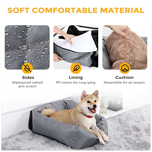【2 en 1 Multifunction】3 couleurs disponibles : noir, gris et beige. Dimensions extérieures : 60 x 50 x 61 cm. Dimensions de la niche : 30 x 38 x 18 cm. Parfait pour les sièges avant et arrière, peut protéger votre voiture, fournit à votre chien un voyage confortable avec vous pendant la conduite. Vous pouvez même l’utiliser comme un lit pour animal de compagnie en intérieur, c’est une parfait housse de siège de voiture à double usage.