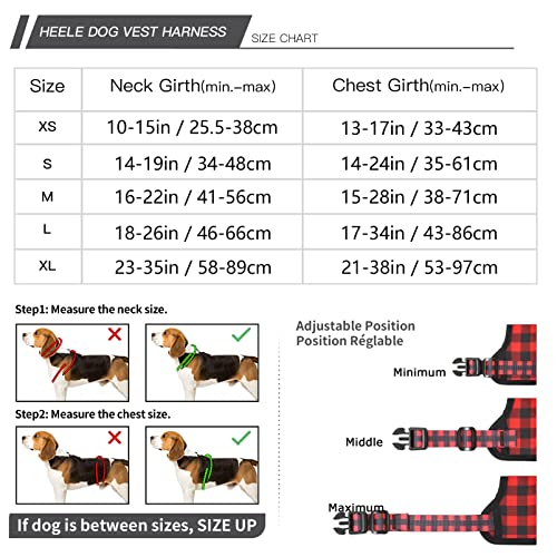 Specification: HEELE Harnais Chien, Harnais pour Moyen Grand Chien Anti Traction Réfléchissant Harnais avec Poignée Rembourrée, 1 Boucle sur la Sangle Droite cou Rendent Facile Mettre et Enlever, Noir-Rouge Plaid, M