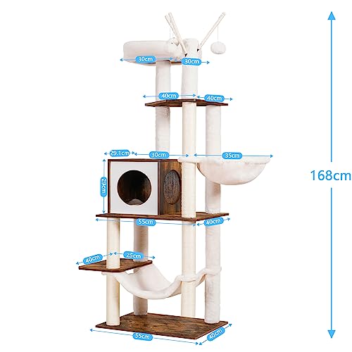 Hey-Brother Arbre à Chat, Tour de Jeux Moderne 168 cm, Meuble pour Chats d’Intérieur avec Griffoirs, Coussins Amovibles, Panier, Marron Rustique EMPJ120SR