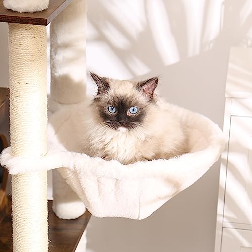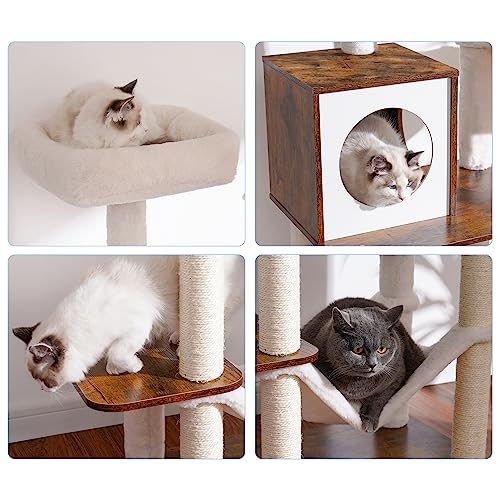Specification: Hey-Brother Arbre à Chat, Tour de Jeux Moderne 168 cm, Meuble pour Chats d’Intérieur avec Griffoirs, Coussins Amovibles, Panier, Marron Rustique EMPJ120SR