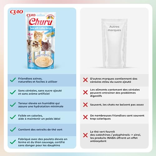 Specification: INABA Churu – Friandises pour Chats en Purée au Thon et Pétoncle – Délicieux Snacks pour Félins – Texture Lisse et Onctueuse – Nourriture pour Chats – 4 Tubes x 14g