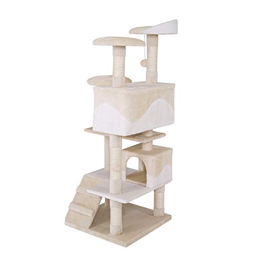 Specification: lionto Arbre à Chat Arbre à Grimper griffoir pour Chat Hauteur 130 cm, Beige/Blanc