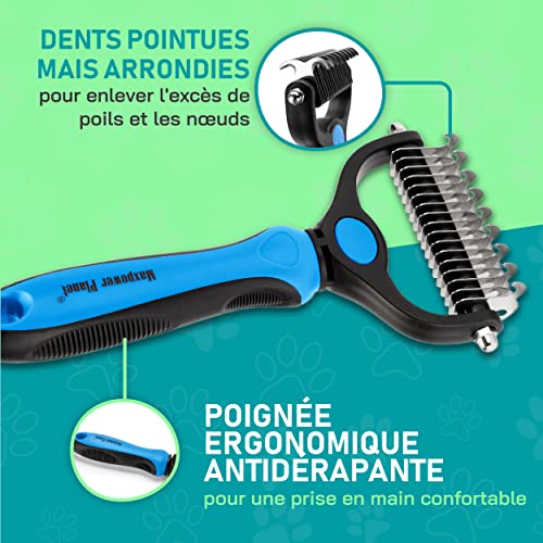 Maxpower Planet Brosse pour chien – Outil de démêlage double face – Râteau à sous-poil pour chien, brosse pour chat – Brosse de toilettage pour chien – Brosse de toilettage pour chien – Brosse de