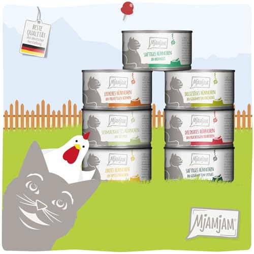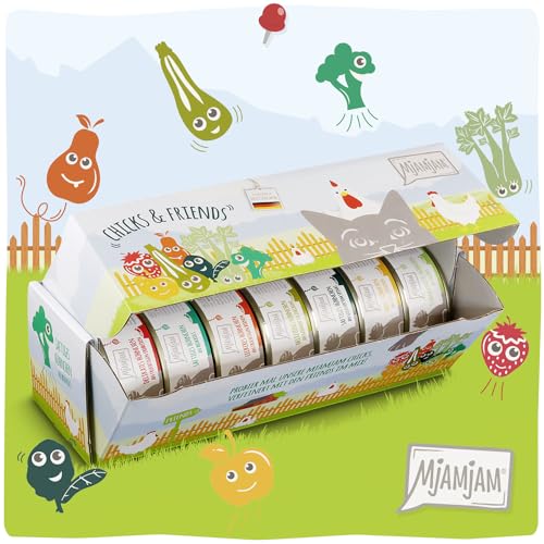 MjAMjAM – Nourriture Humide Premium pour Chats – Chicks & Friends Box, Pack de 7 (7 x 100g), sans céréales avec Un supplément de Viande