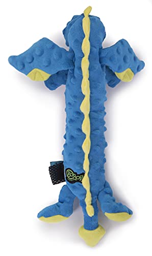 Specification: Moonmoon goDog Bubble Plush Skinny Dragons Squeaky Plush Dog Toy, Chew Guard Technology – Blue, Large