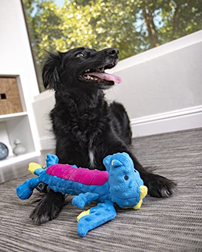 Moonmoon goDog Bubble Plush Skinny Dragons Squeaky Plush Dog Toy, Chew Guard Technology – Blue, Large