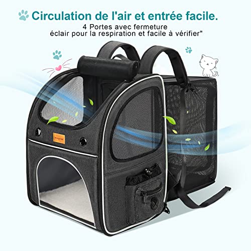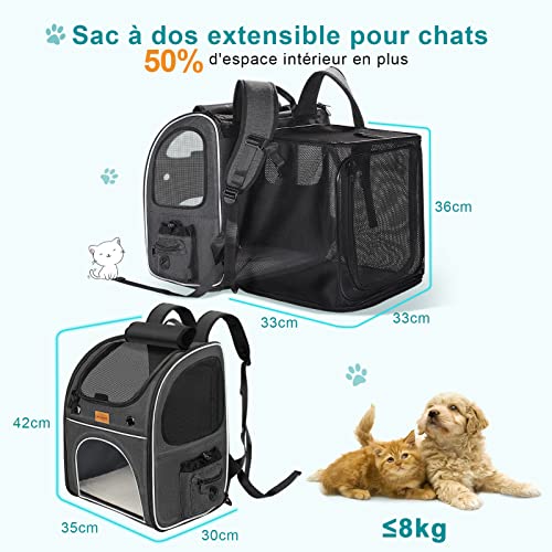 😸Sac Transport Chat Extensible et Pliable : le sac à dos pour chat avec un grand dos extensible qui donne à votre animal plus de liberté de mouvement et le maintient à l’aise. Le sac à dos chat chien mesure 35 x 30 x 42 cm (étendu à 35 x 62 x 28 cm), recommandé pour les animaux 8 kg, convient aux chiots et 2 chatons.
