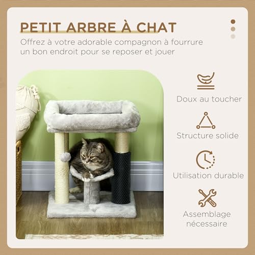 PawHut Petit Arbre à Chat Arbre à Grimper Tour de Jeux Hauteur 48 cm Poteau en sisal Gris avec Balle Suspendue Gris