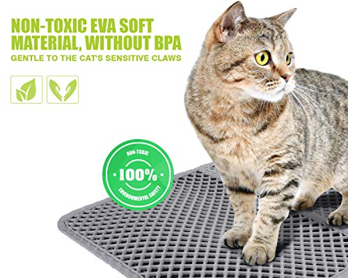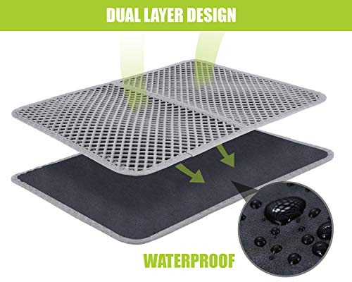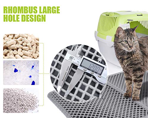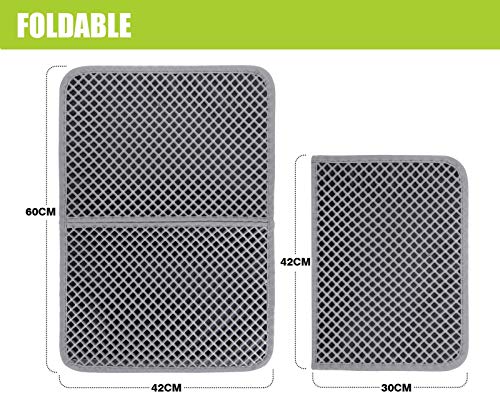 Specification: Pecute Tapis Litière Chat Double Couche Pliable 60x42cm,Non Toxique EVA avec 12mm Grand Trou en Forme de Diamant, Tapis de Toilette Chat Imperméable Antidérapant, Facile à Nettoyer