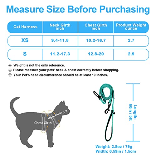 Specification: PetBonus Harnais et laisse réglables pour chat, anti-fuite, respirant, pour la promenade, contrôle facile, laisse réfléchissante et harnais pour chat, chaton, chaton (turquoise, taille S)