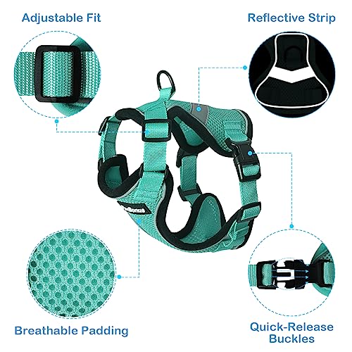 PetBonus Harnais et laisse réglables pour chat, anti-fuite, respirant, pour la promenade, contrôle facile, laisse réfléchissante et harnais pour chat, chaton, chaton (turquoise, taille S)