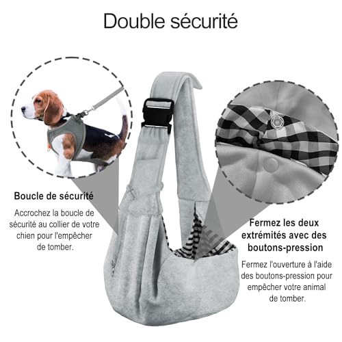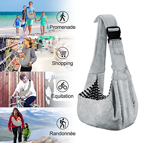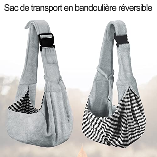 PETLOFT Sac de Transport pour Chien, Réversible Sling Sac de Transport Chien Bandoulière, Réglable Dog Sling, Sac de Transport Chiot avec Crochet de Collier pour Chien/Chat/Lapin Jusqu’à 4.99kg