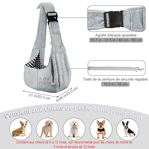 Specification: PETLOFT Sac de Transport pour Chien, Réversible Sling Sac de Transport Chien Bandoulière, Réglable Dog Sling, Sac de Transport Chiot avec Crochet de Collier pour Chien/Chat/Lapin Jusqu’à 4.99kg