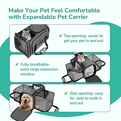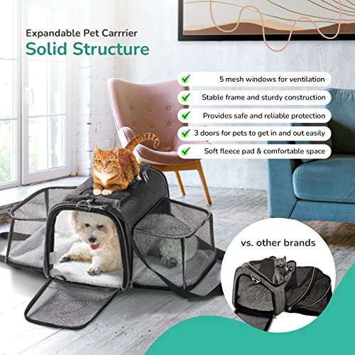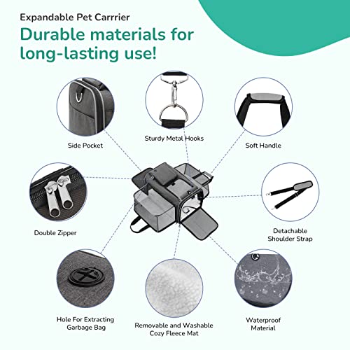 PetsN’all Airline Approved Sac de Transport pour Chat Chien de Compagnie en Avion et Train et Voiture, 2 cotés Extensibles, Facile à Transporter et Plus Respirant