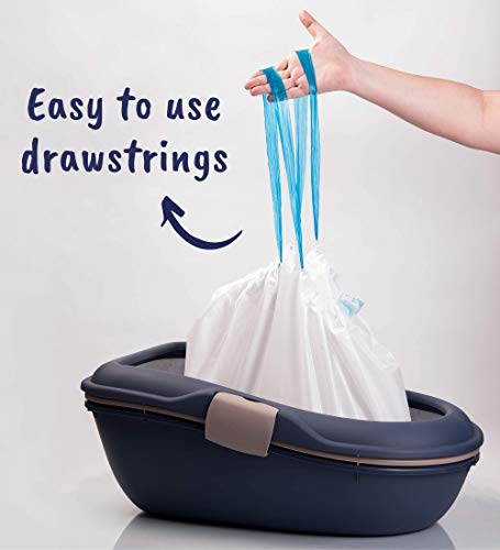 Pettiny 20 Sacs à Litière pour Chat avec Cordons de Serrage Doublures Résistantes aux Griffures pour Bac à Litière de Moyenne et Grande Taille