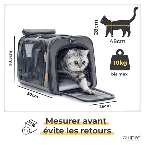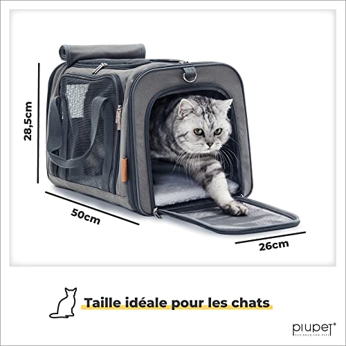 PiuPet® Caisse de Transport Chat & Petit Chien I Cage Sac de Animaux de Compagnie jusqu’à 10kg I Fiable avec 4 Ouvertures