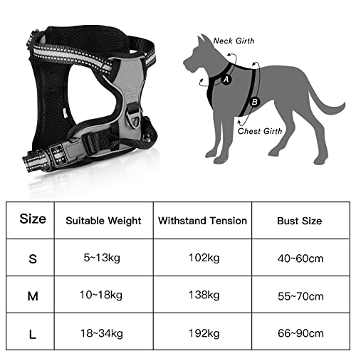 Specification: SIBOTER Harnais Chien, Harnais Anti Traction pour Chien, Harnais Chien Anti Traction Réfléchissant, avec Laisse pour Chien, pour Entraînement en Plein Air, Gris, M