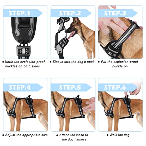 【Facile à Utiliser】 Harnais anti traction pour chien n’a 2 boucles sur la poitrine, ce qui rend le harnais pour chien facile à mettre et aucun chien n’a besoin d’entrer. Faites glisser le harnais sur la tête de votre chien, attachez-le, ajustez les sangles , et voilà ! Saisissez la poignée supérieure pour un contrôle supplémentaire.