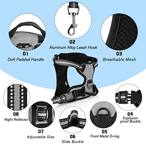 SIBOTER Harnais Chien, Harnais Anti Traction pour Chien, Harnais Chien Anti Traction Réfléchissant, avec Laisse pour Chien, pour Entraînement en Plein Air, Gris, M