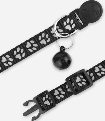 Taglory Collier Chat Anti Étranglement, 2 pcs Réglable Réfléchissant Collier pour Chat Chaton Chiot avec Clochette et Boucle de Sécurité, 19-32cm Noir