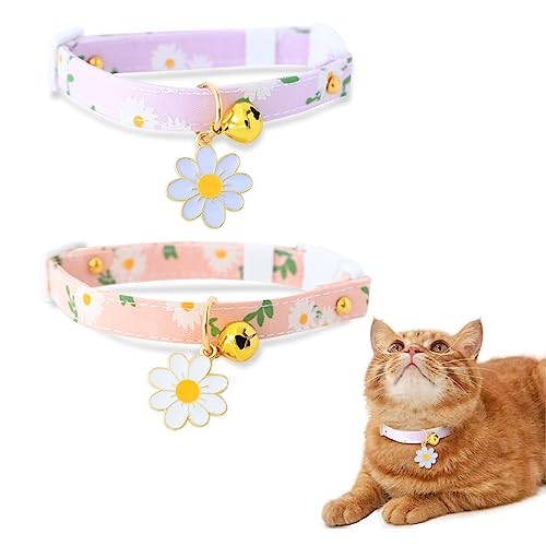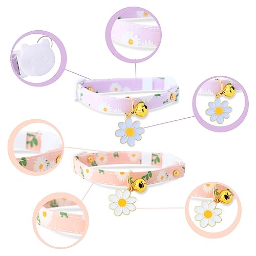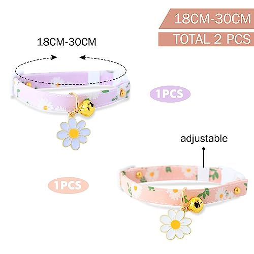XIXKOLYU® Lot de 2 colliers de chat en coton déchirable avec clochette, pendentif fleur rose et violet, joli collier pour chat, collier pour chaton, idéal pour chat