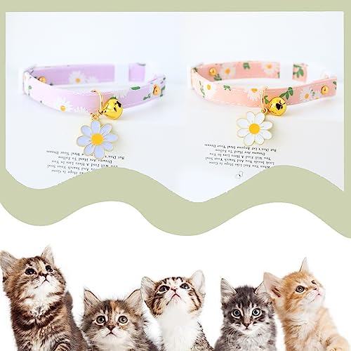 Specification: XIXKOLYU® Lot de 2 colliers de chat en coton déchirable avec clochette, pendentif fleur rose et violet, joli collier pour chat, collier pour chaton, idéal pour chat