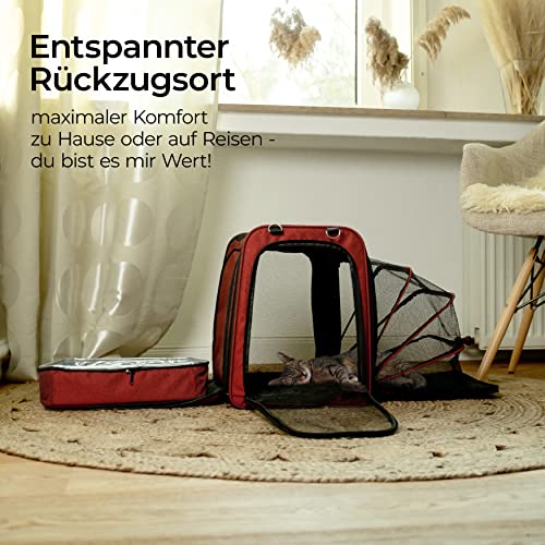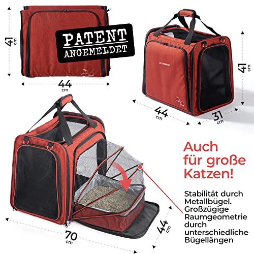 YOU DECIDE MUNICH Caisse de transport pour chat [avec litière] Sac de transport pour chat même de grands chats, sac de transport avec litière, boîte de voyage pliable CAT’s Premium Suite Rouge